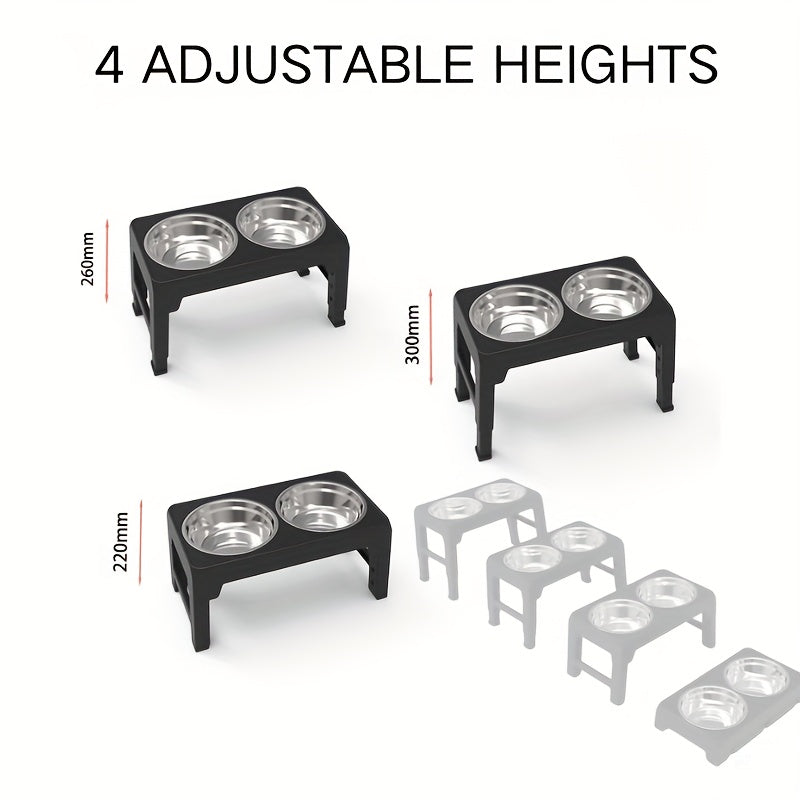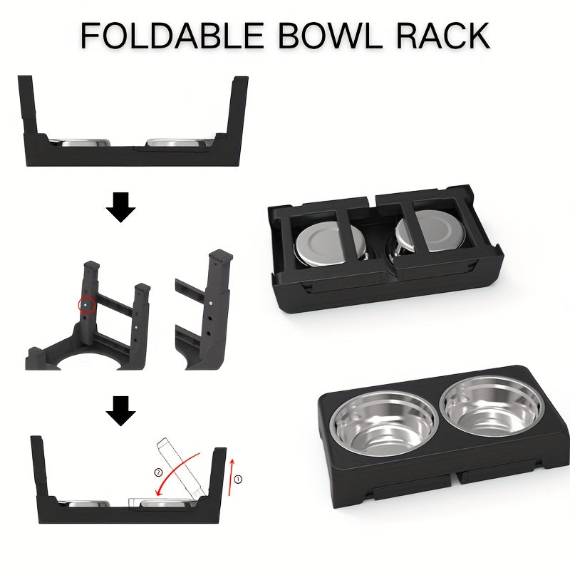 The Dog Bowl Rack Is Foldable And Adjustable In Height, Suitable For Dogs Of Various Body Types. It Includes 2 Feeding Bowls, A Pet Bowl That Can Be Raised And Lowered, And An Elevated Folding Bowl Rack.