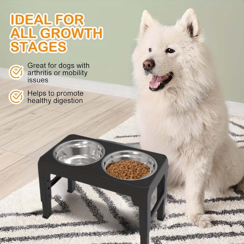 2-in-1 Dog Feeding & Watering Station, Thermoplastic Rubber Pet Bowl Mat with Stainless Steel Dual Bowls, Anti-Spill Pet Feeder, Includes Bowl Holder, Ideal for All Dog Breeds
